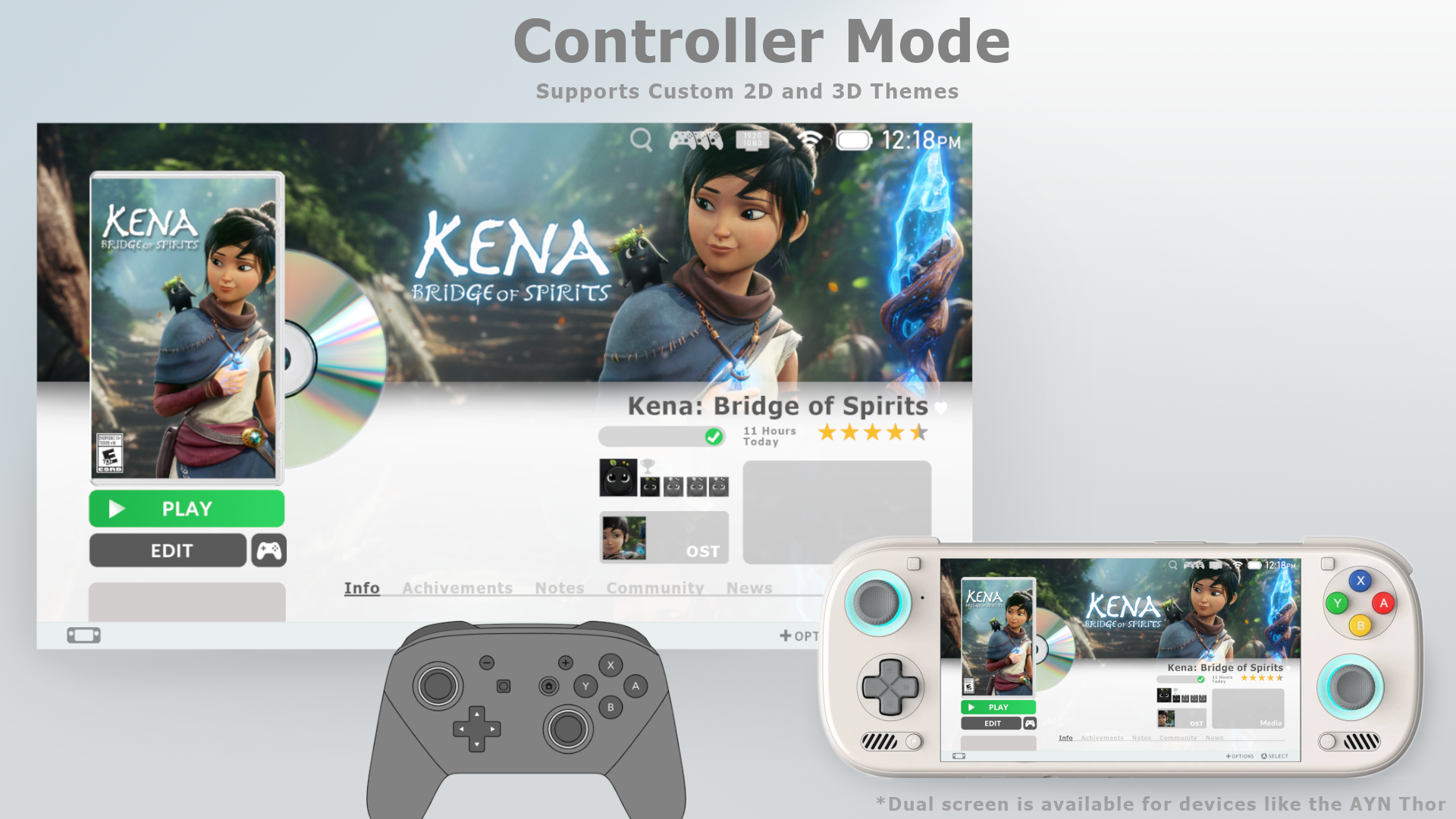‎ - Modes: Full controller and touch support across “Desktop Mode”, “Controller Mode” (Supports 2D & 3D Custom Themes), “Small Mode”, “Mobile Mode”, and “VR Mode”.
